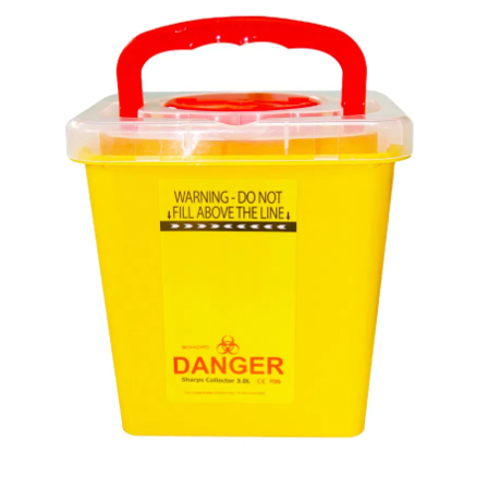 Dianggo: Nglumpukake sampah sharps, kalebu jarum suntik, nyetel infus, jarum hypodermic, jarum bedah, lsp